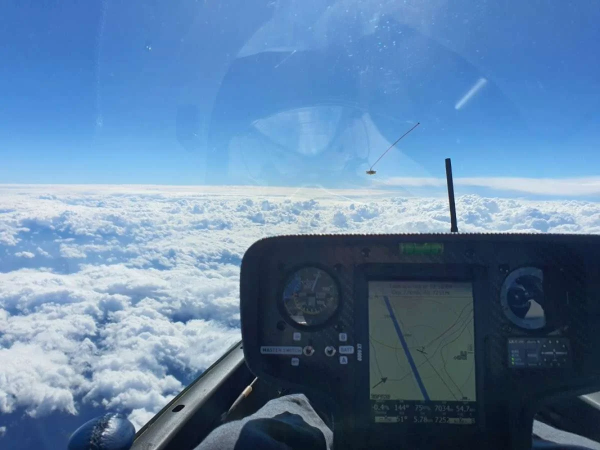 »In potem uživaš v razgledu. Vedno sem si želel poleteti nad oblake. Ko sem dosegel rekordno višino, so me poklicali s kontrolnega stolpa in rekli, da bo dovolj. Vprašali so me, ali imam že diamantno značko. Ko sem jim povedal, da še ne, so me še nekaj časa pustili,« se vrhunca v svoji kratki karieri jadralnega pilota spominja Žiga Poljanšek. Dvignil sej je 8431 m visoko, le 417 m mu je zmanjkalo do višine Čomolungme, Mt. Everesta, najvišje gore na svetu. Potem je moral pustiti prostor potniškim letalom, ki so jih kontrolorji leta, dokler je Žiga postavljal rekord, usmerjali stran od Dolenjskih Toplic.